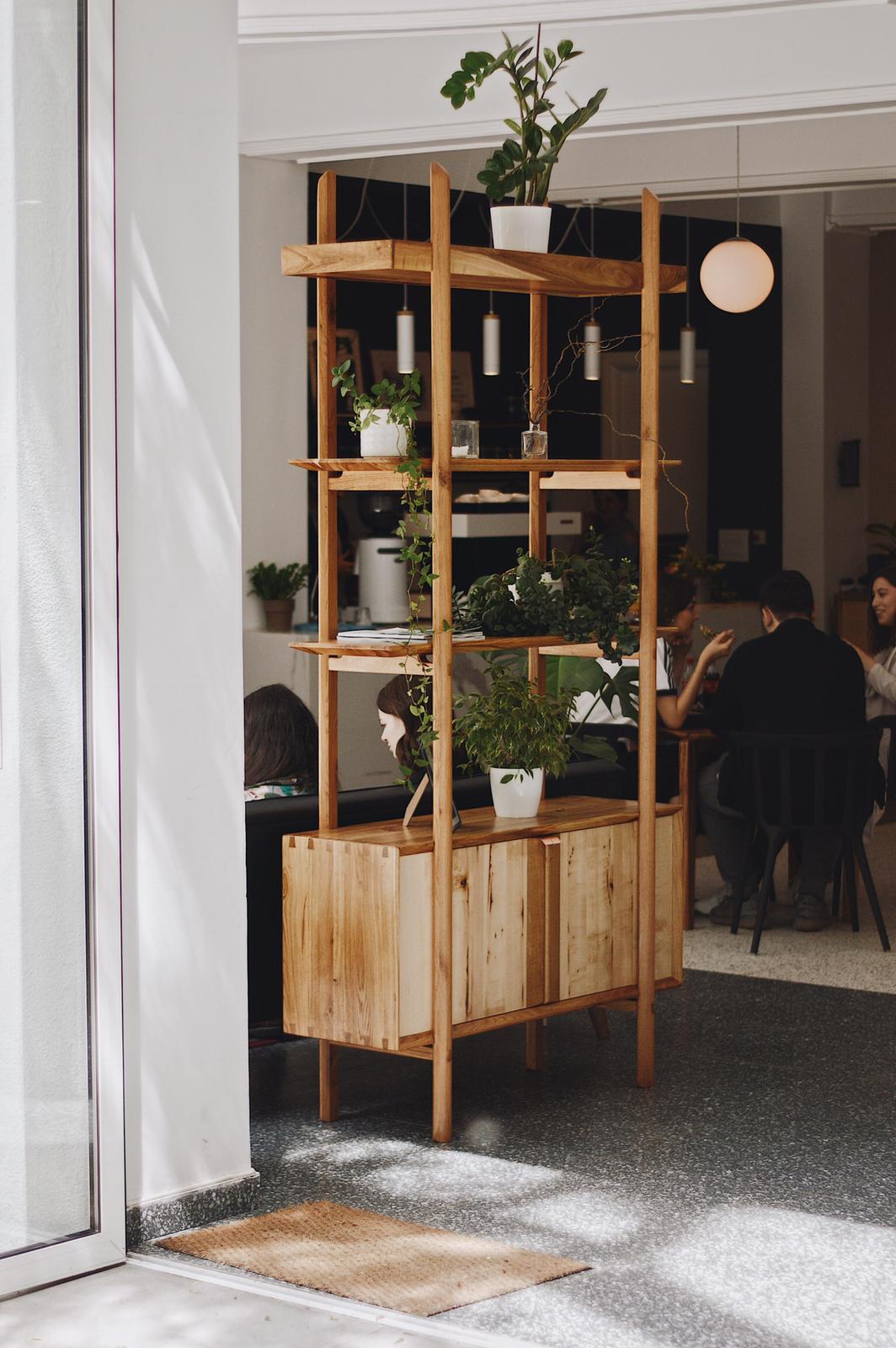 Born as an indispensable object to uplift the cozy homelike atmosphere at Harmony Cafe, this custom project has become the absolute protagonist of the entrance area of the restaurant. This modern bookcase is a complement to multi-functional design because it allows our client to display decorative objects, books, as well as potted plants.